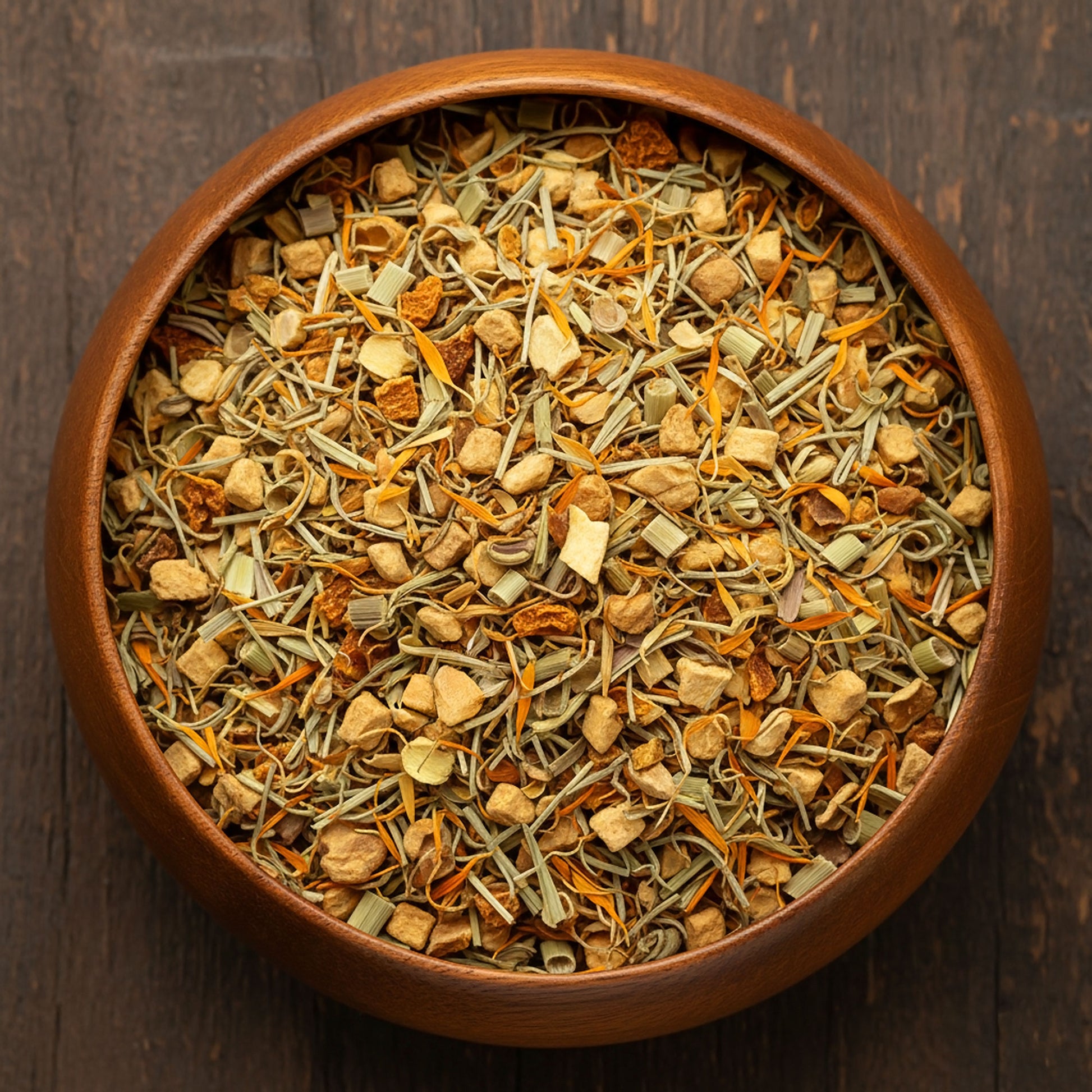 A vibrant herbal blend that combines bold ginger warmth with bright citrus and delicate sweetness. Zesty orange peel, lemongrass, and apple harmonise beautifully to create a smooth and flavourful infusion.